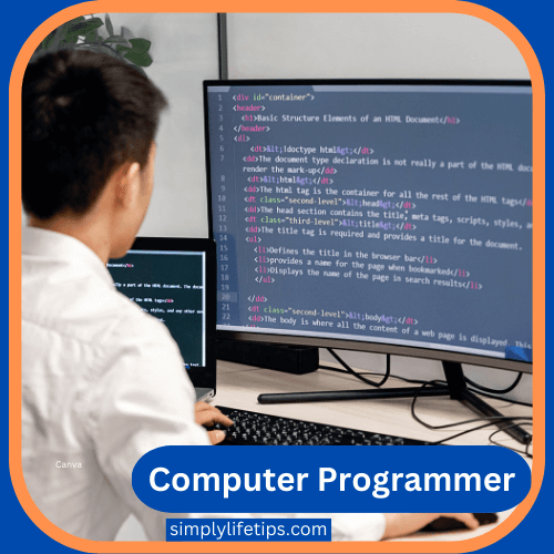 A computer programmer is a person who writes and tests the code that makes computer software and applications work, using programming languages like Python, Java, C++, and others.